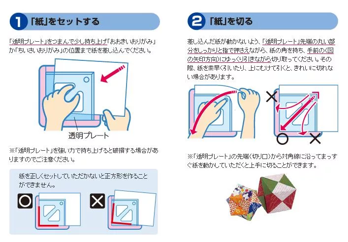 ■ 可將不用的廢紙或自己喜愛的紙張利用裁紙器,輕鬆裁製成15*15cm與7.5*7.5cm標準色紙的尺寸。