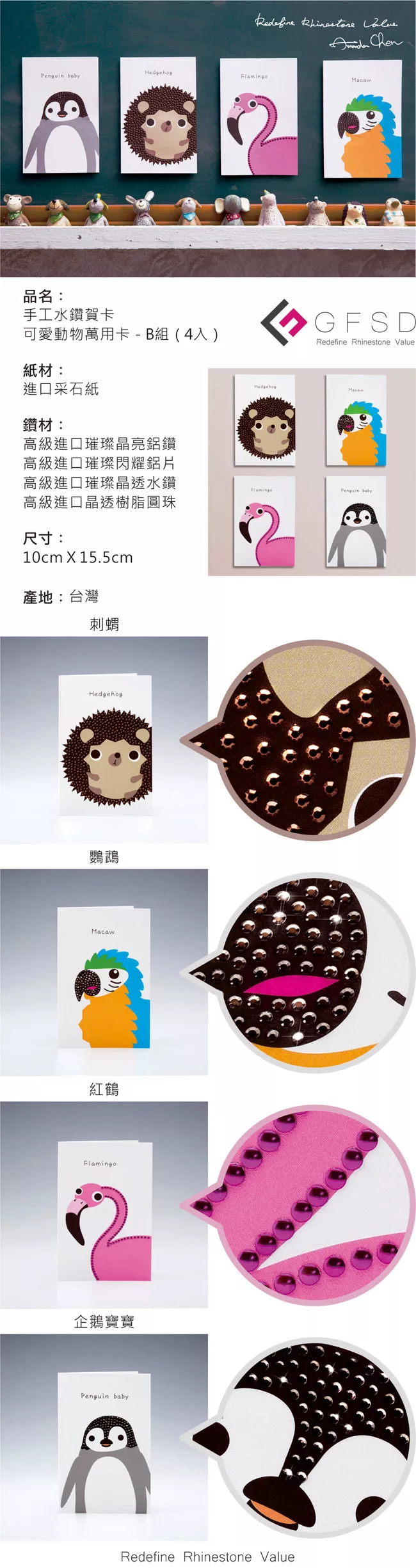 【GFSD】水鑽精品手工賀卡-可愛動物萬用卡-B組(4入) 評價