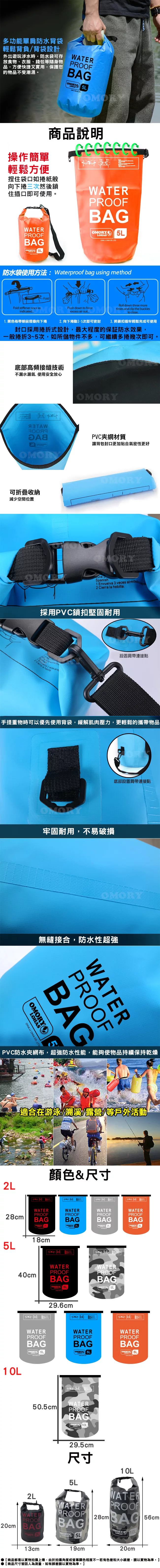 【OMORY】圓筒超輕量單肩防水袋-漂流袋5L-迷彩 評價