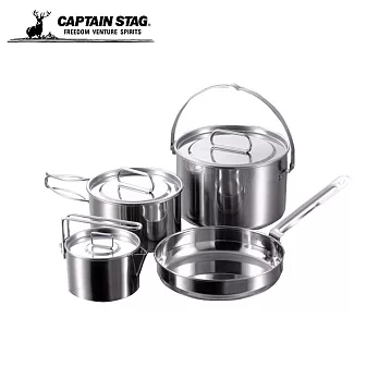 Captain Stag 日本鹿牌 不鏽鋼鍋四件組 M-5504 - 城市綠洲 (露營.野營.湯鍋.水壺.鍋具組.炊具)